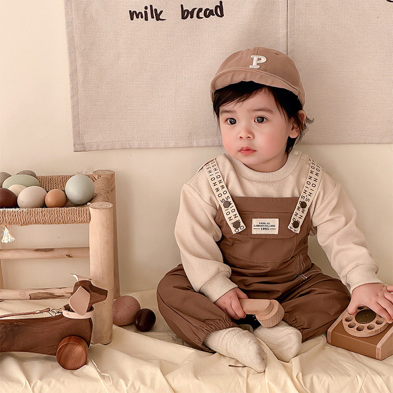 婴儿背带裤套装男女宝宝两件套春秋装连体裤洋气外出服网红可爱萌