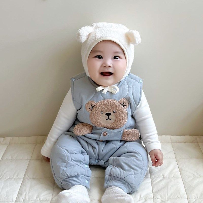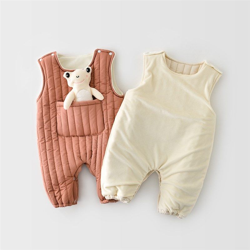 婴儿背带裤套装秋冬加绒夹棉分体宝宝衣服冬季无袖两件套可爱超萌