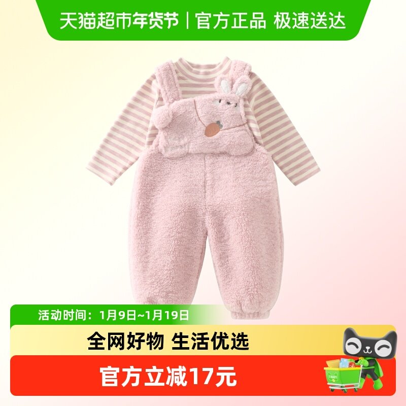 DUUDUU婴儿背带裤套装秋冬装女宝宝加绒连体衣打底衫两件套外出服