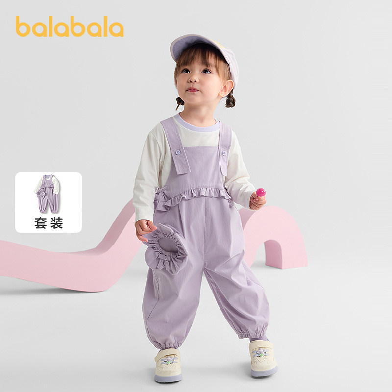 巴拉巴拉婴儿背带裤套装女童打底衫宝宝衣服两件套儿童秋装童装小
