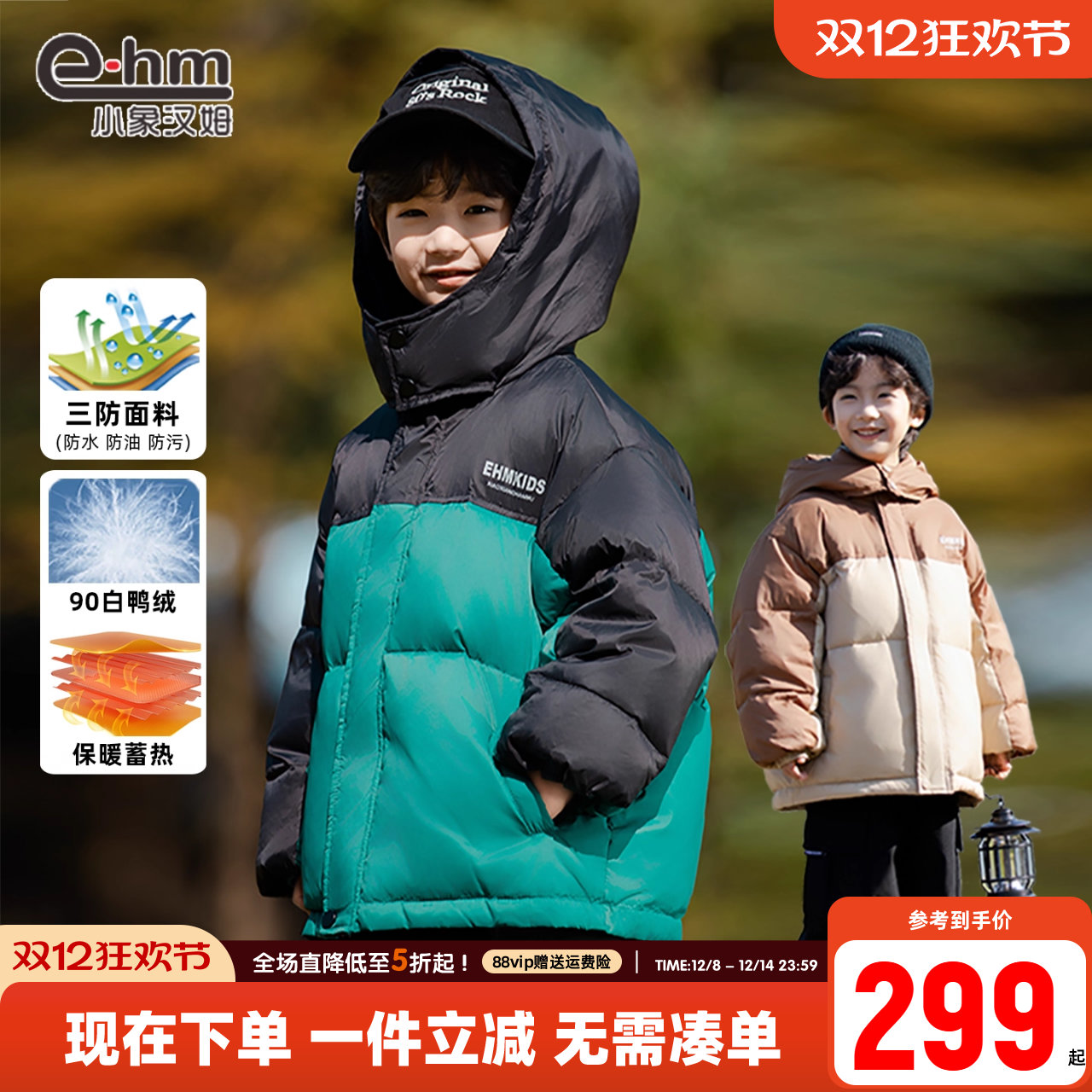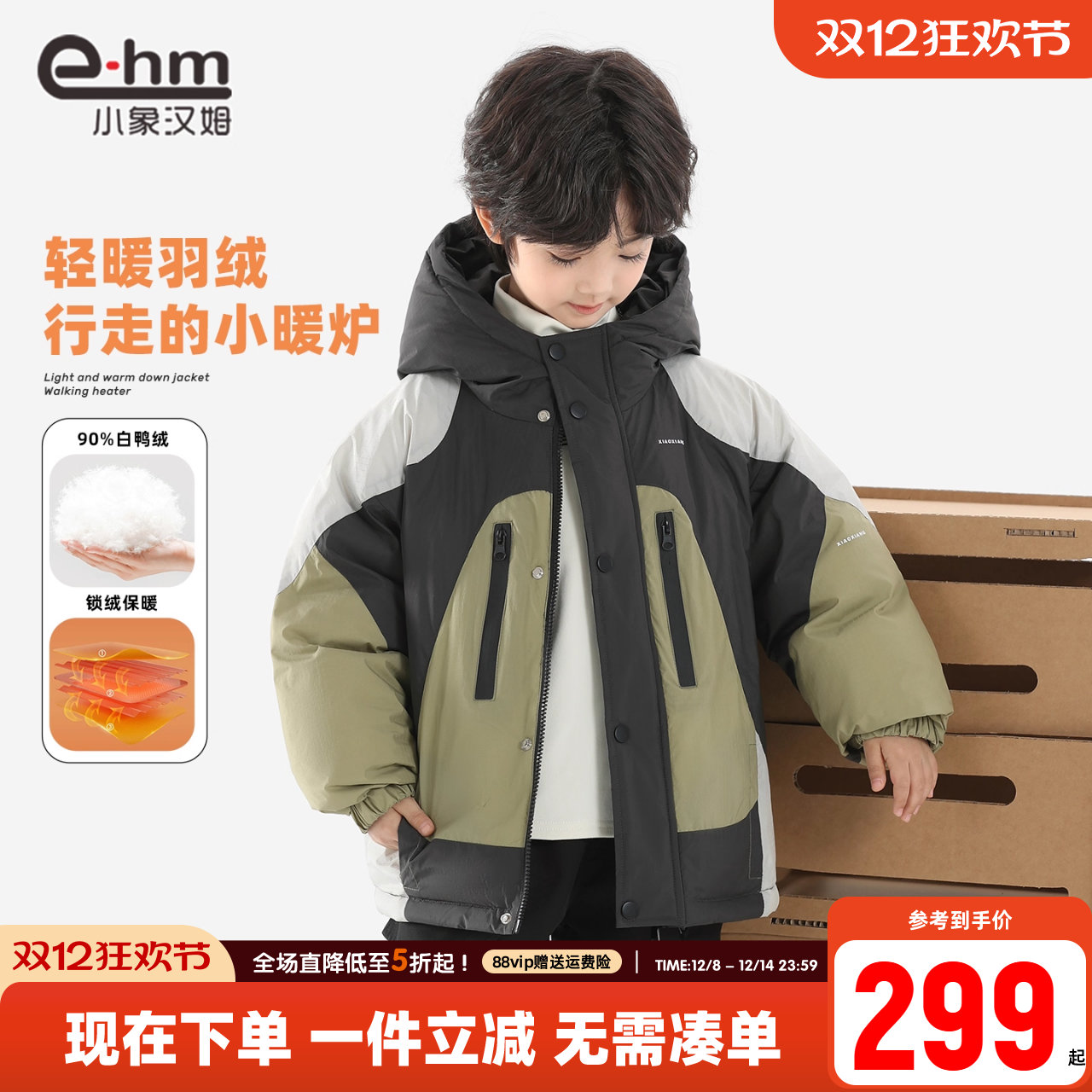 小象汉姆男童男童童装羽绒服外套冬装韩版白鸭绒2025新款保暖