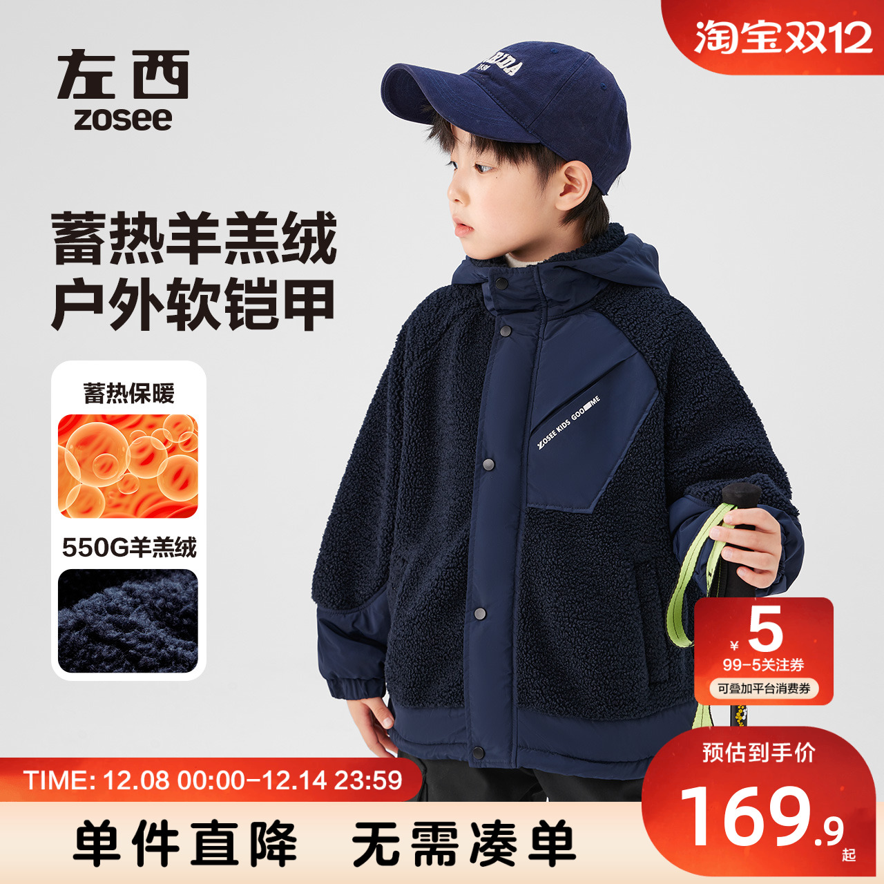 左西童装男童羊羔绒外套连帽加绒 儿童秋冬装2025新款氧气韩版潮
