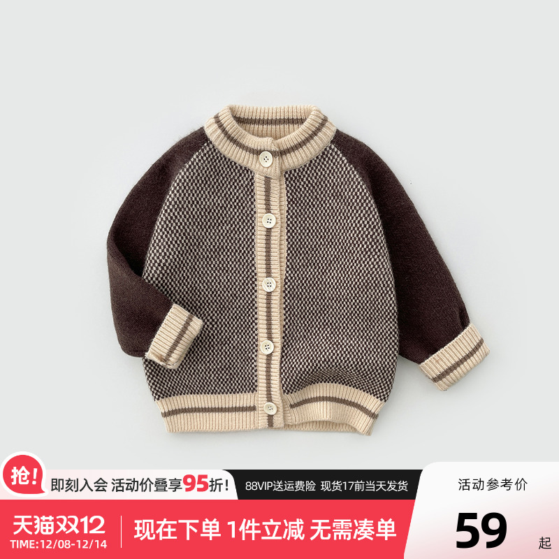 派町童装儿童针织毛衣秋冬装百搭男宝宝开衫2024新款韩版拼接外套