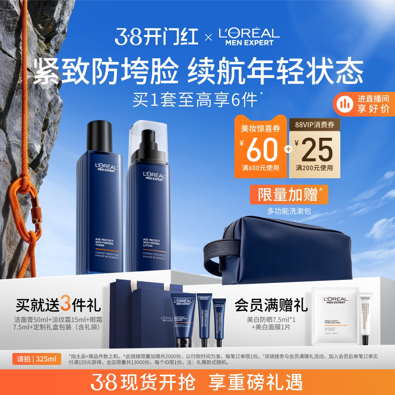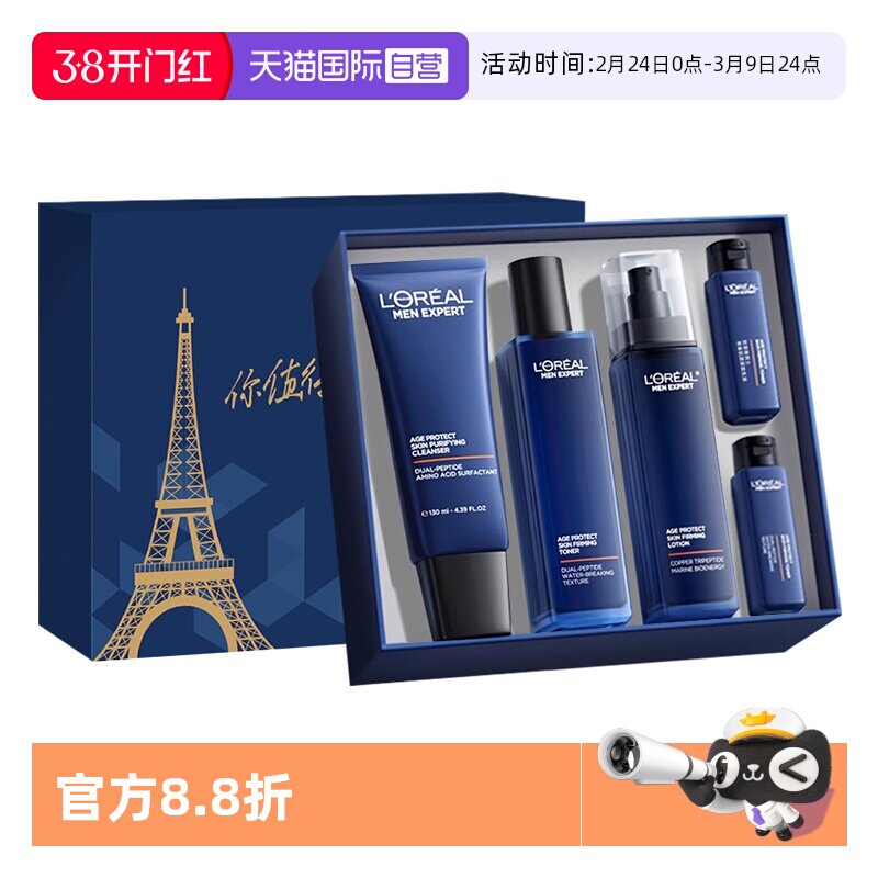 【38立即抢购】欧莱雅男士淡纹水乳套装紧致抗皱保湿护肤品礼物