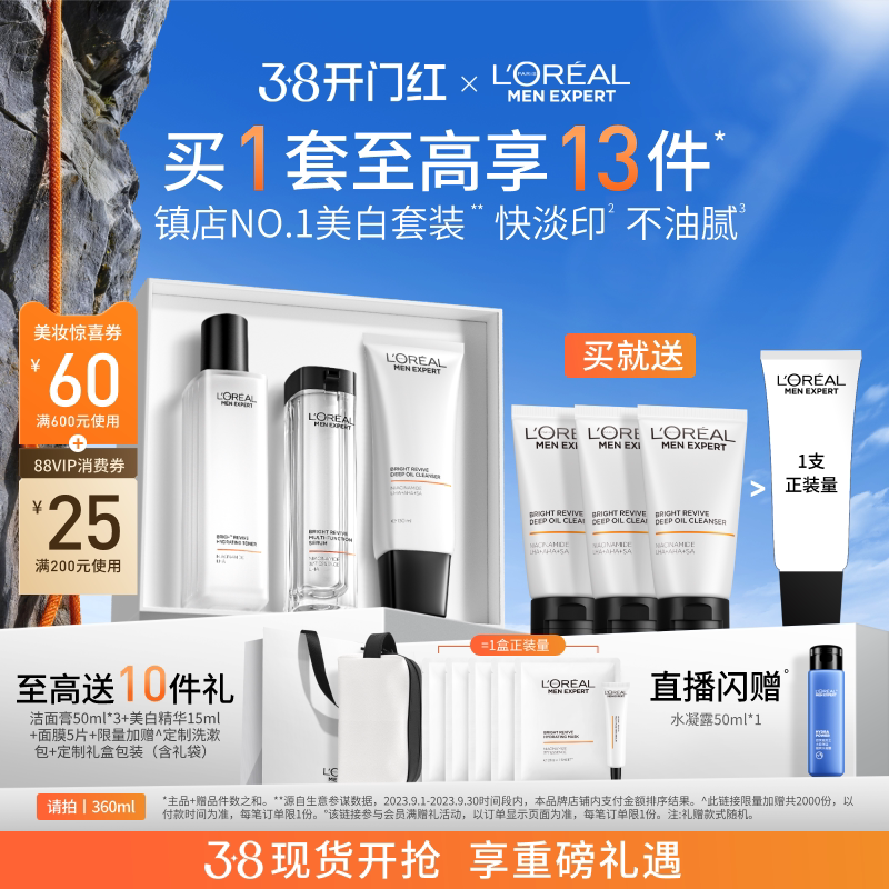 【38立即抢购】欧莱雅男士耀白套装美白洗面奶水乳护肤品控油保湿