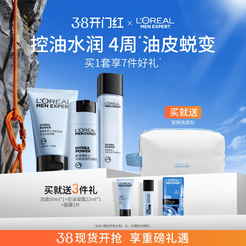 欧莱雅男士控油套装哑光护肤品水乳洗面奶补水保湿爽肤水礼物正品