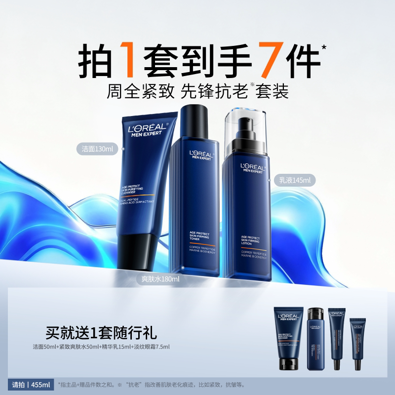 欧莱雅男士紧致淡纹抗老套装护肤品水乳洗面奶爽肤水乳液保湿修护