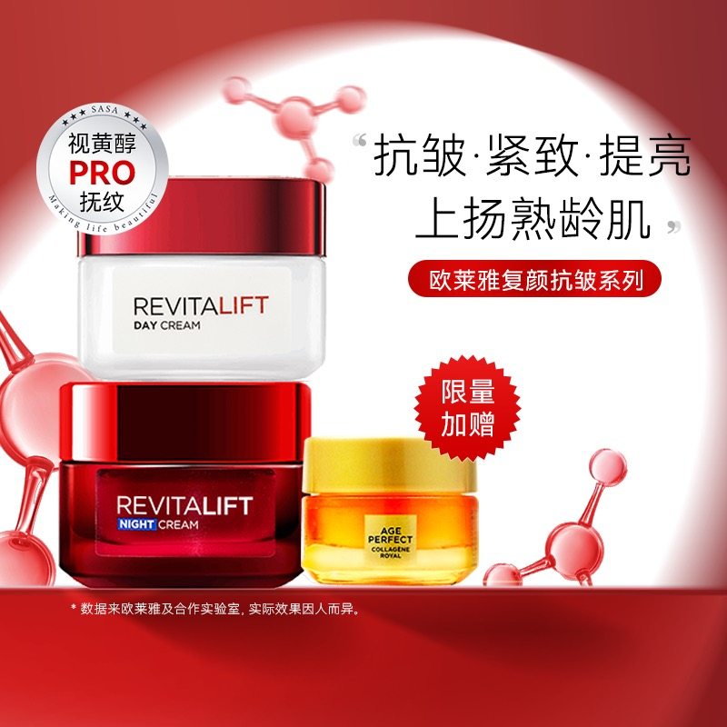 【新年礼物】欧莱雅复颜抗皱面霜补水保湿视黄醇紧致日霜晚霜套装