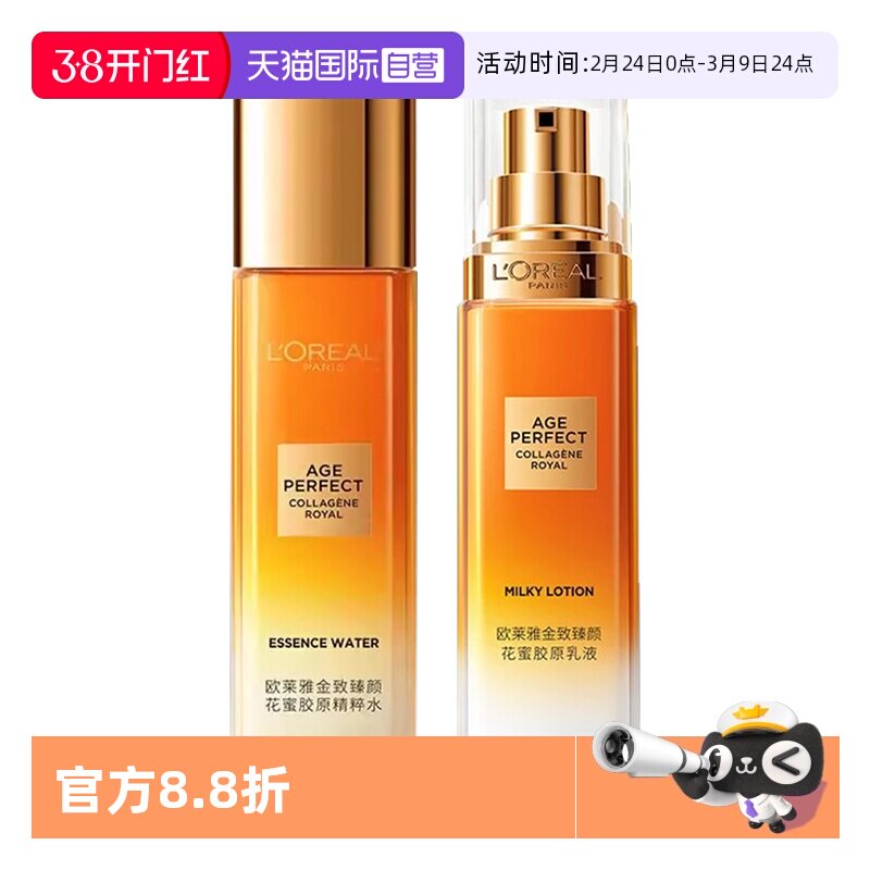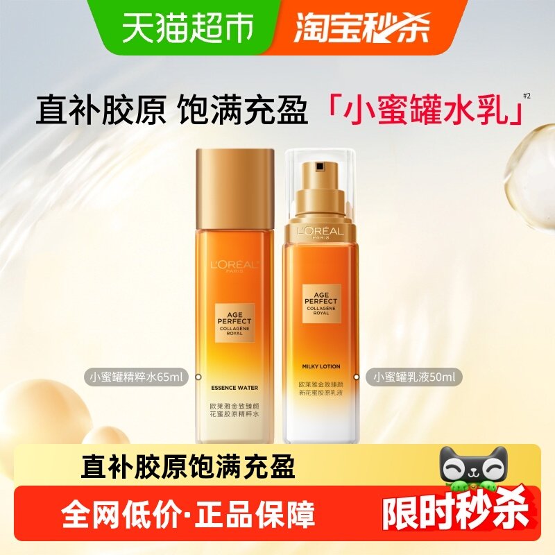 欧莱雅小蜜罐花蜜胶原水乳套装护肤品秋冬补水保湿紧致抗皱抗老C