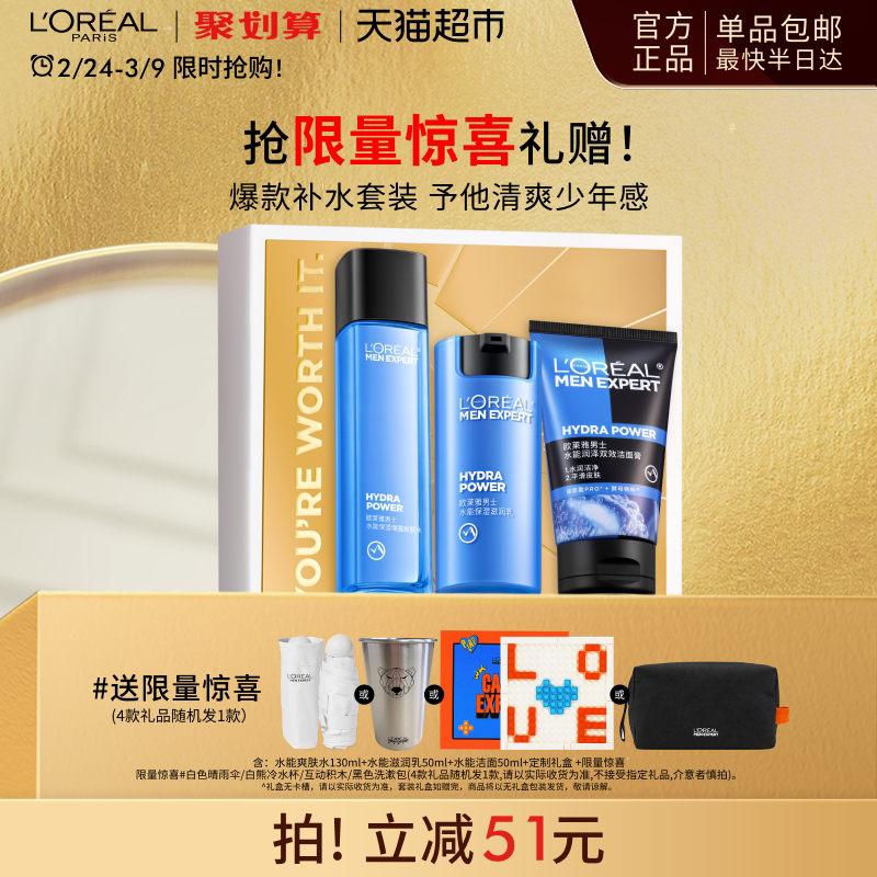 【38立即抢购】欧莱雅男士保湿套装补水洗面奶水乳面霜护肤品礼物