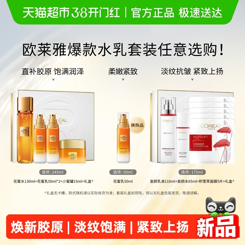 欧莱雅花蜜胶原复颜水乳套装小蜜罐面霜爽肤水保湿紧致抗老护肤品