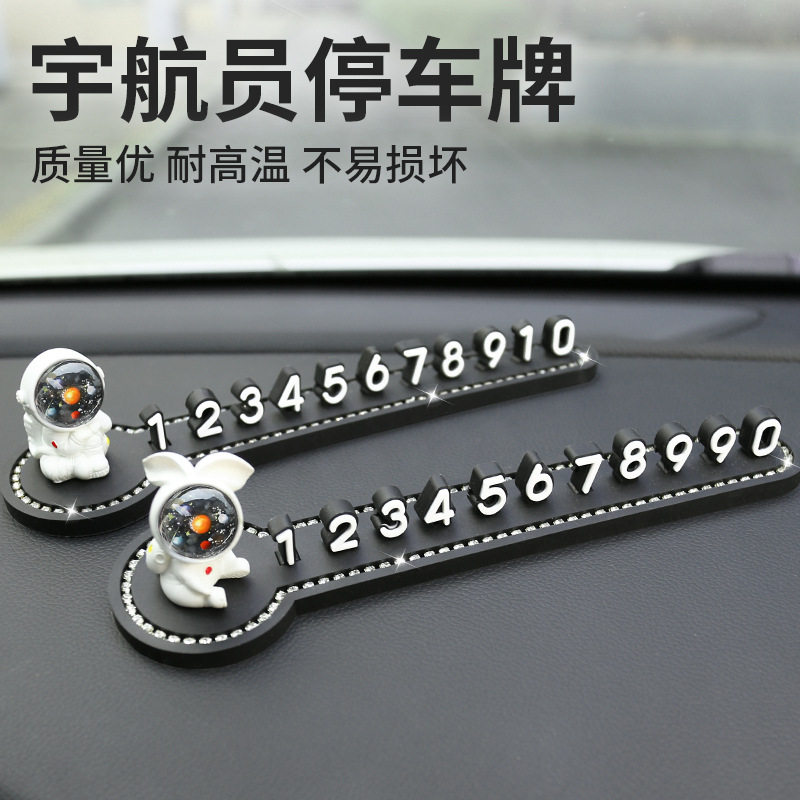 汽车宇航员移车挪车电话牌车牌号码数字摆件可爱车载临时停车牌女