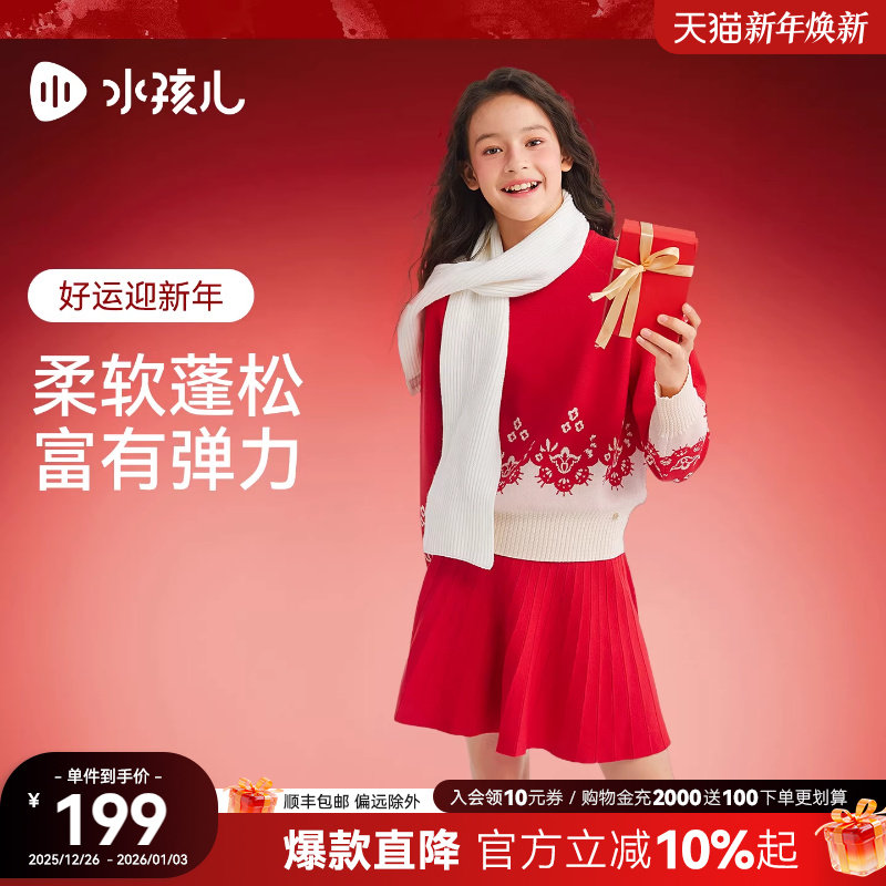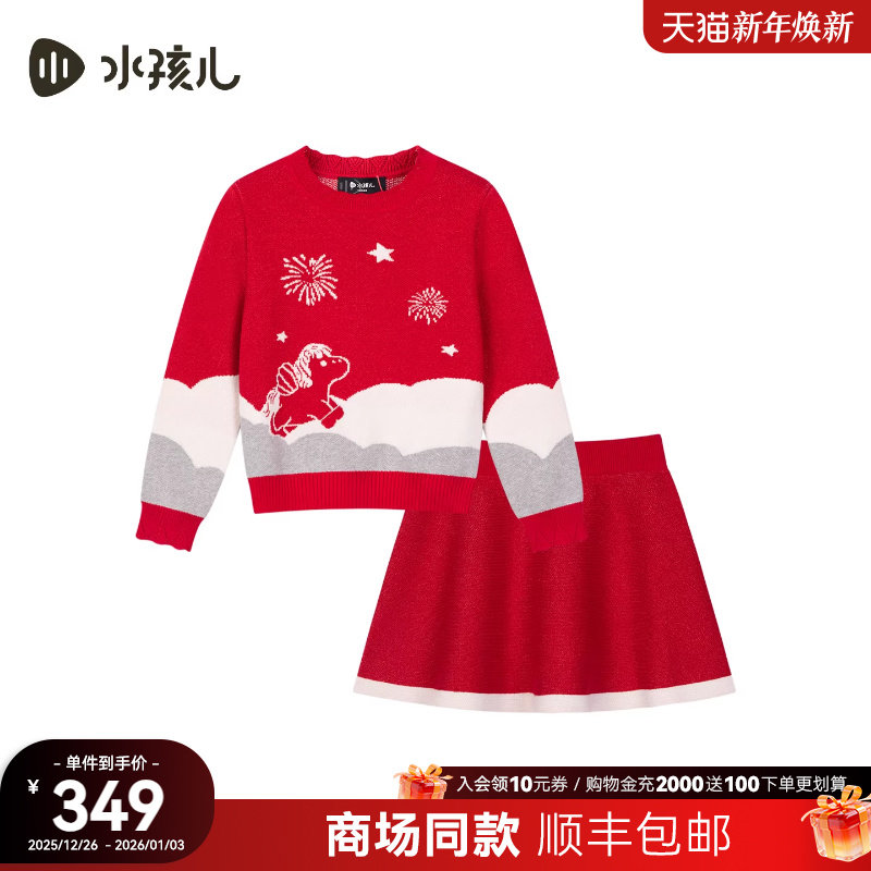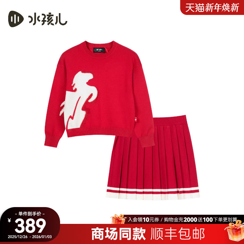 [商场同款]水孩儿女童套裙2026春装新品马年红色毛衣针织裙两件套