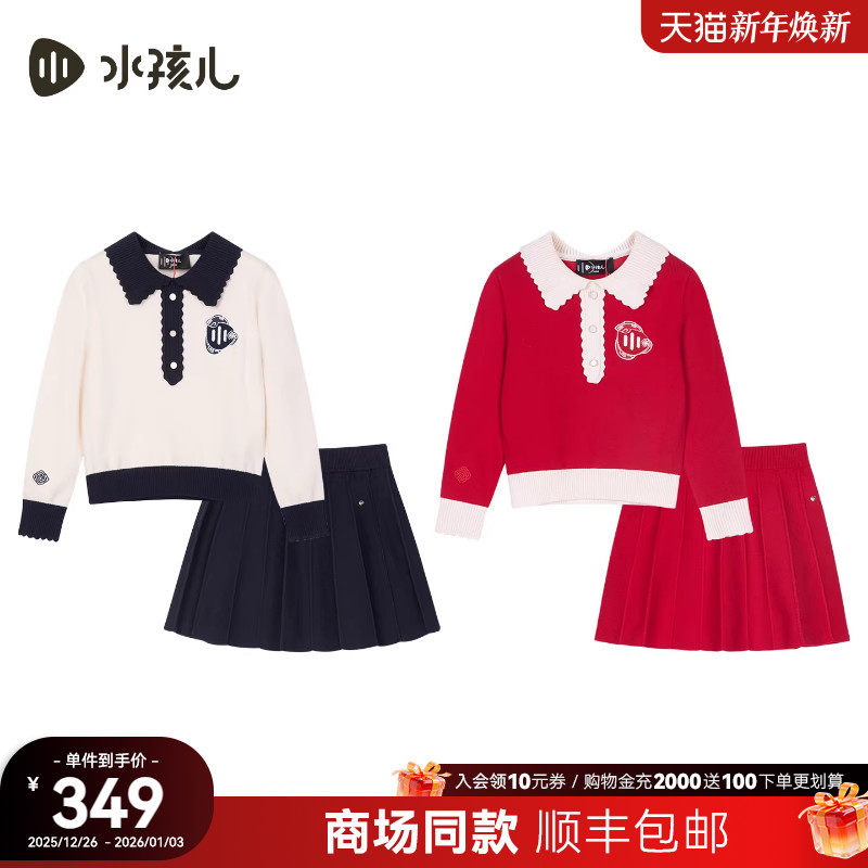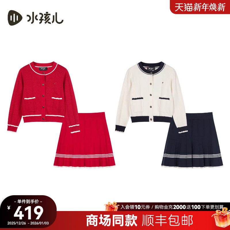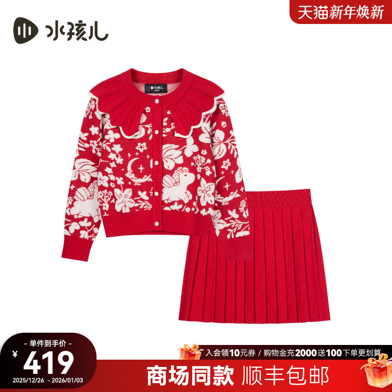 【商场同款】水孩儿女童套裙2026春装新品红色本命年针织开衫裙子