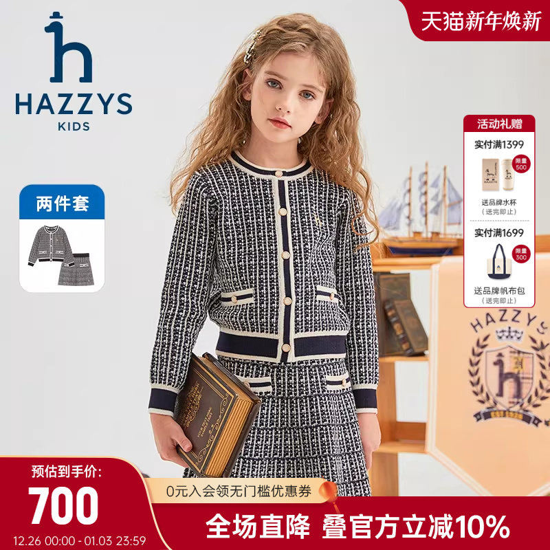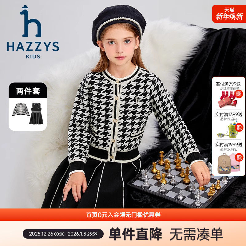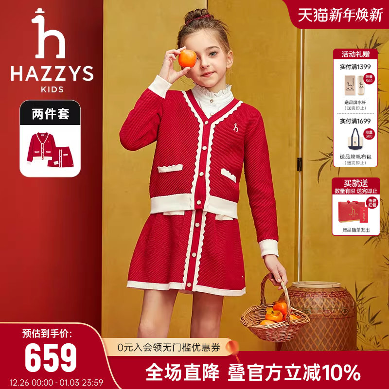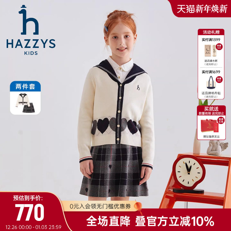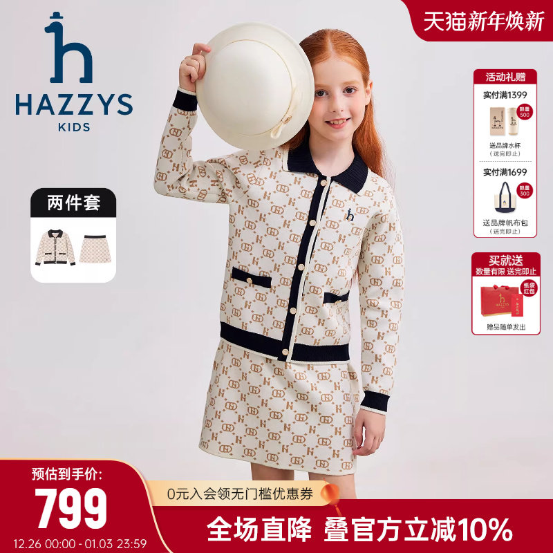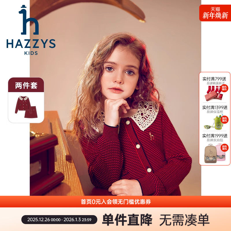 hazzys哈吉斯童装女童套裙2026春季新品新年款甜美针织套裙两件套