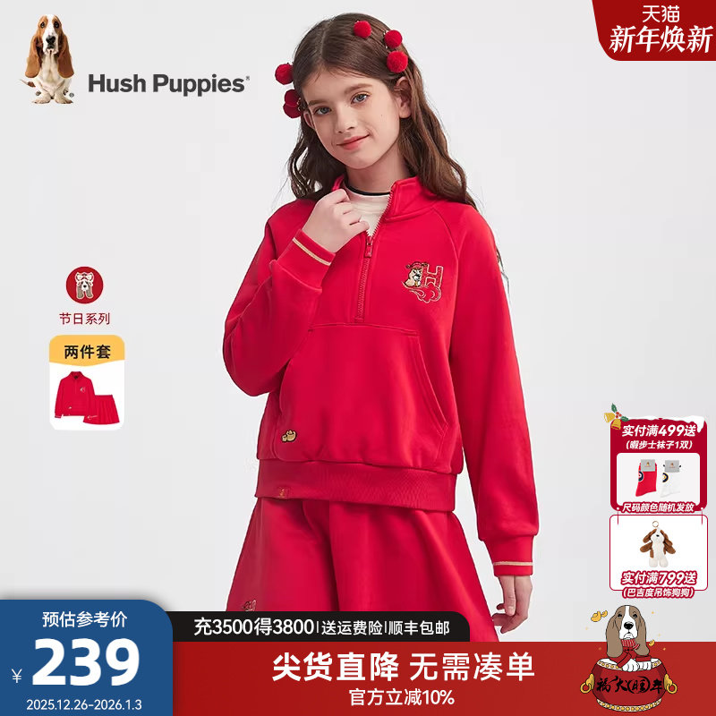 暇步士童装女童套裙春秋新品大童半拉链卫衣儿童甜美半裙新春礼服