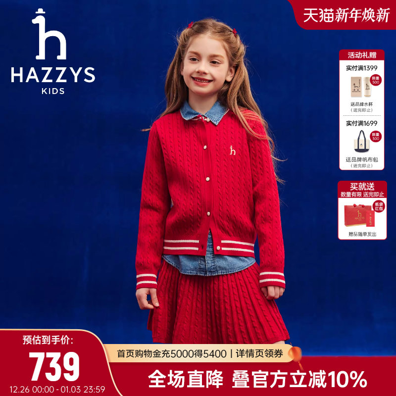 hazzys哈吉斯童装女童套裙2026春新年经典红舒适套裙两件套
