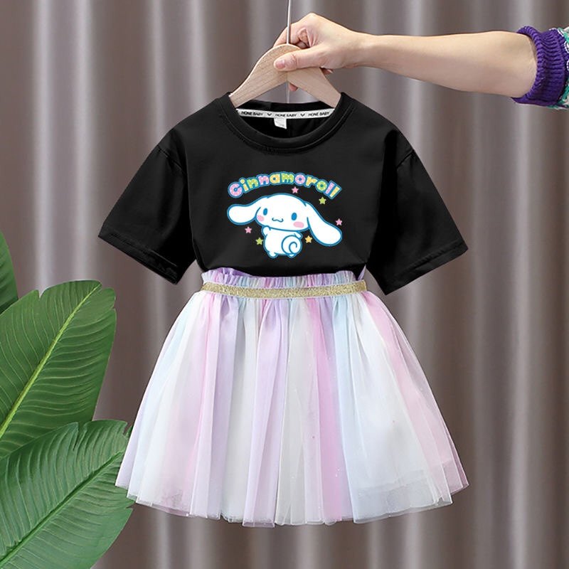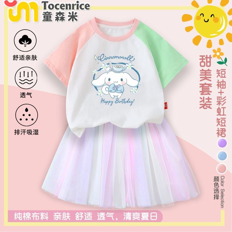 玉桂狗库洛米女童套裙2025新款洋气儿童公主裙纱裙女宝夏装裙子潮