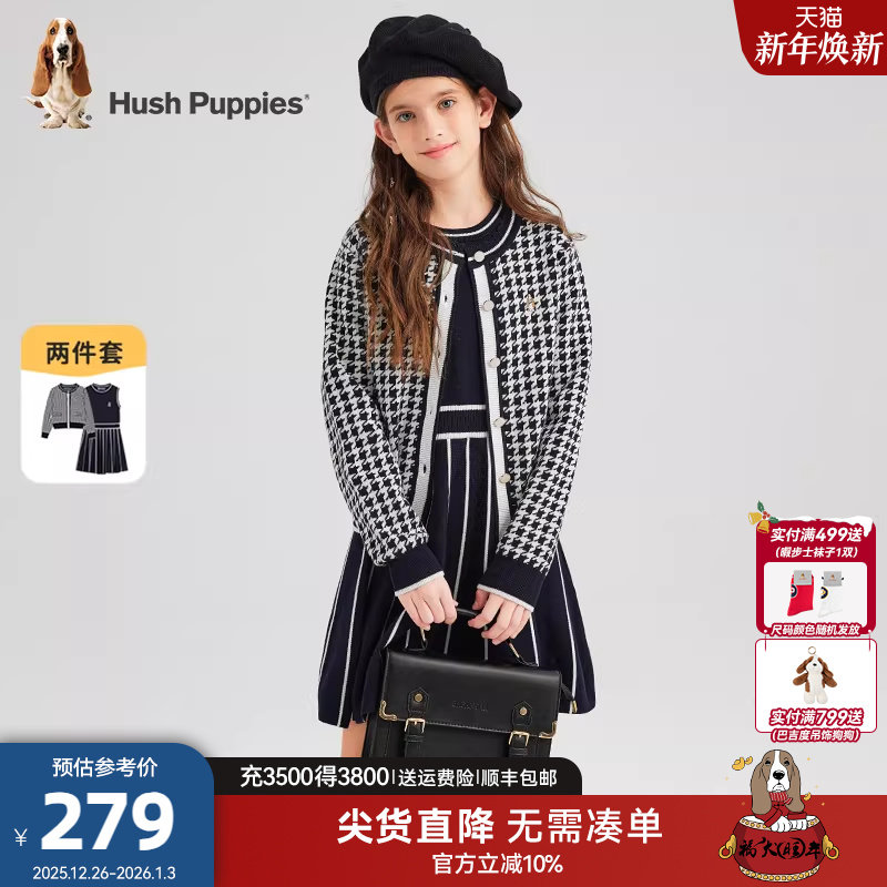 暇步士童装女童套裙春秋装拜年服儿童小香风针织开衫裙子两件套潮