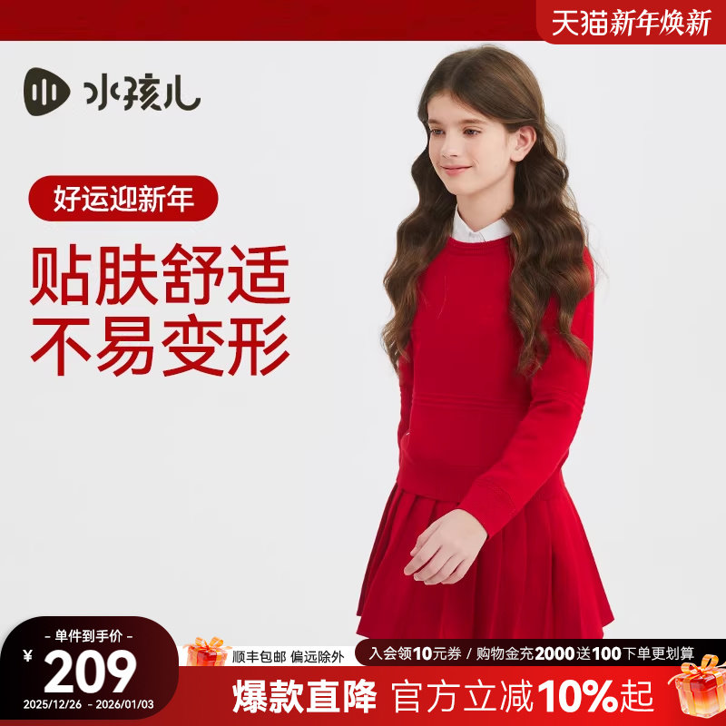 【商场同款】水孩儿女童套裙2026春装新品红色毛衣半身裙两件套