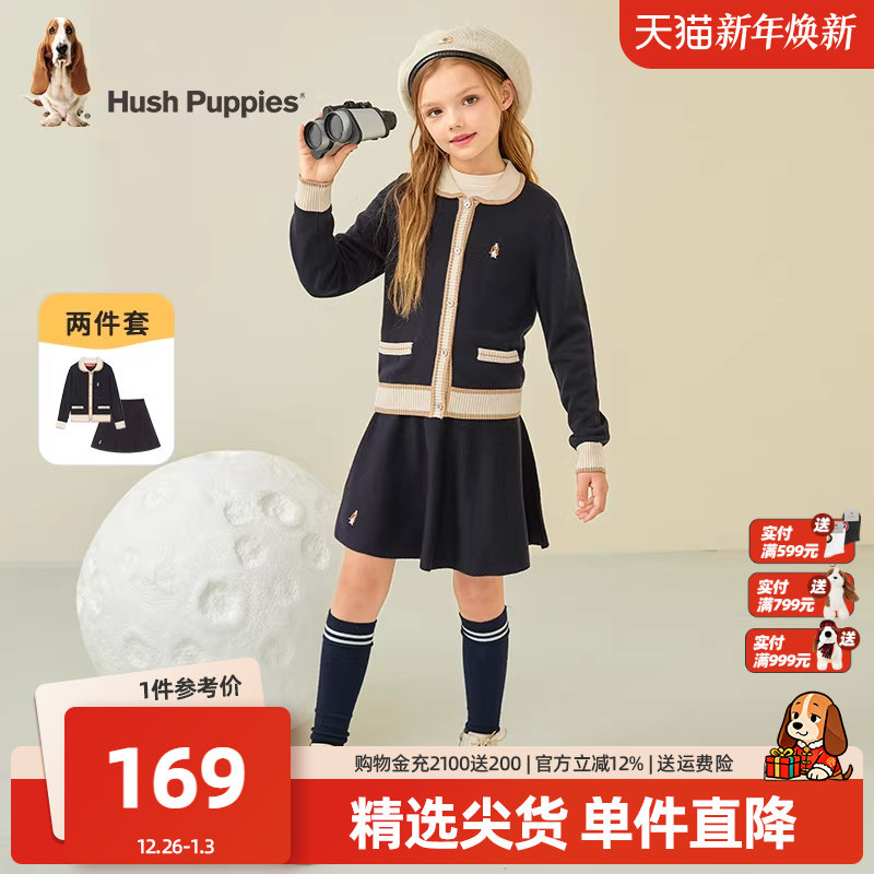 暇步士童装女童套裙秋冬装新款大童小香风甜美开衫儿童百搭半身裙