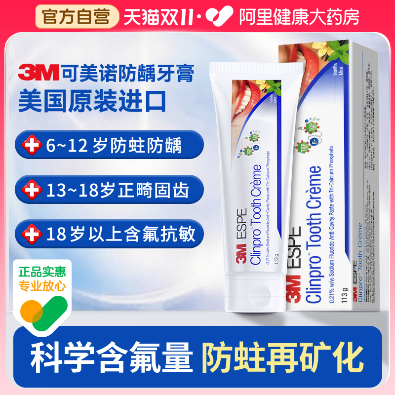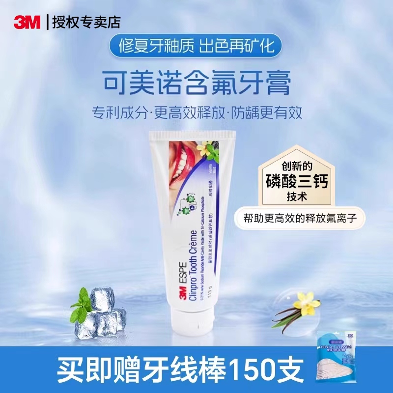 美国3m牙膏可美诺含氟牙膏儿童成人防蛀防龋正畸薄荷味官方旗舰店