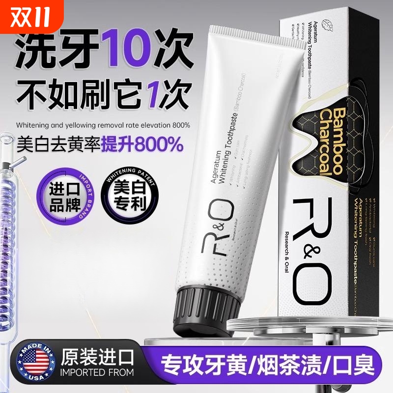 RO美国原装进口备长炭牙膏美白去黄去口臭抑菌牙膏成人官方正品