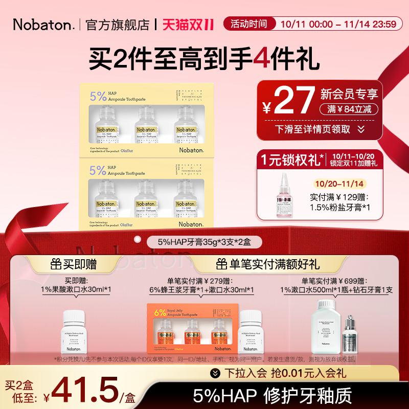 美国Nobaton诺巴顿农场蜂王浆精华牙齿敏感美白含氟安瓶牙膏