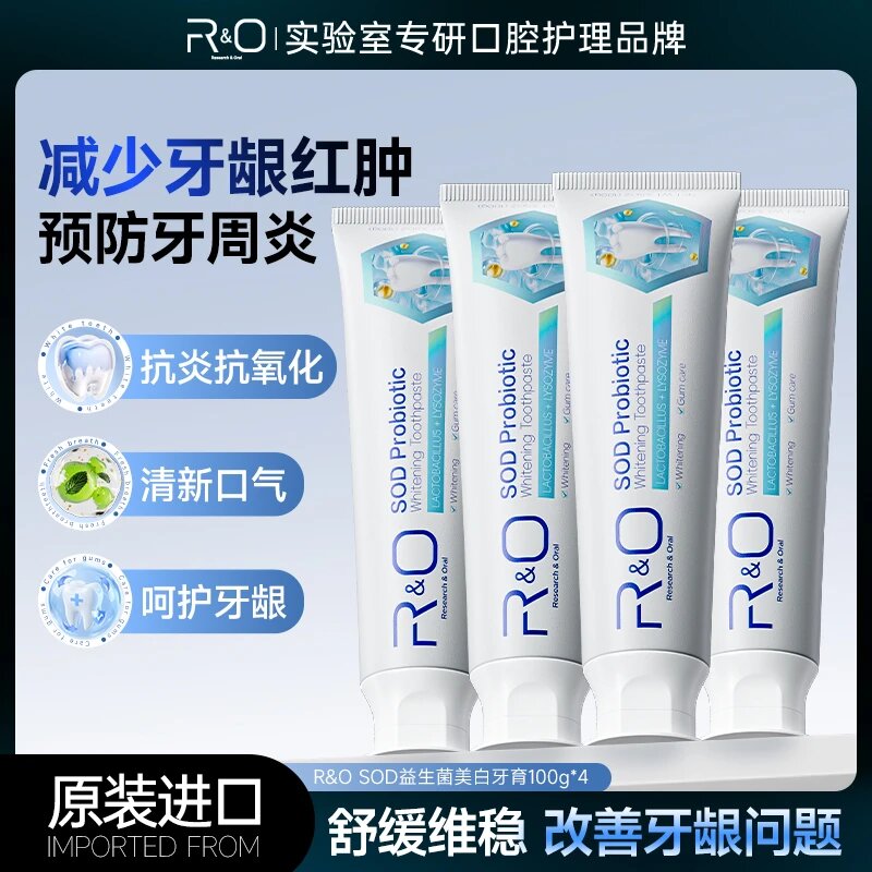 RO美国牙膏益生菌美白牙膏减少牙龈红肿清新口气官方旗舰店正品