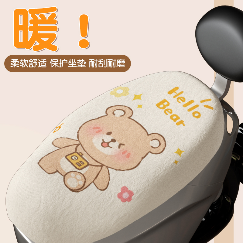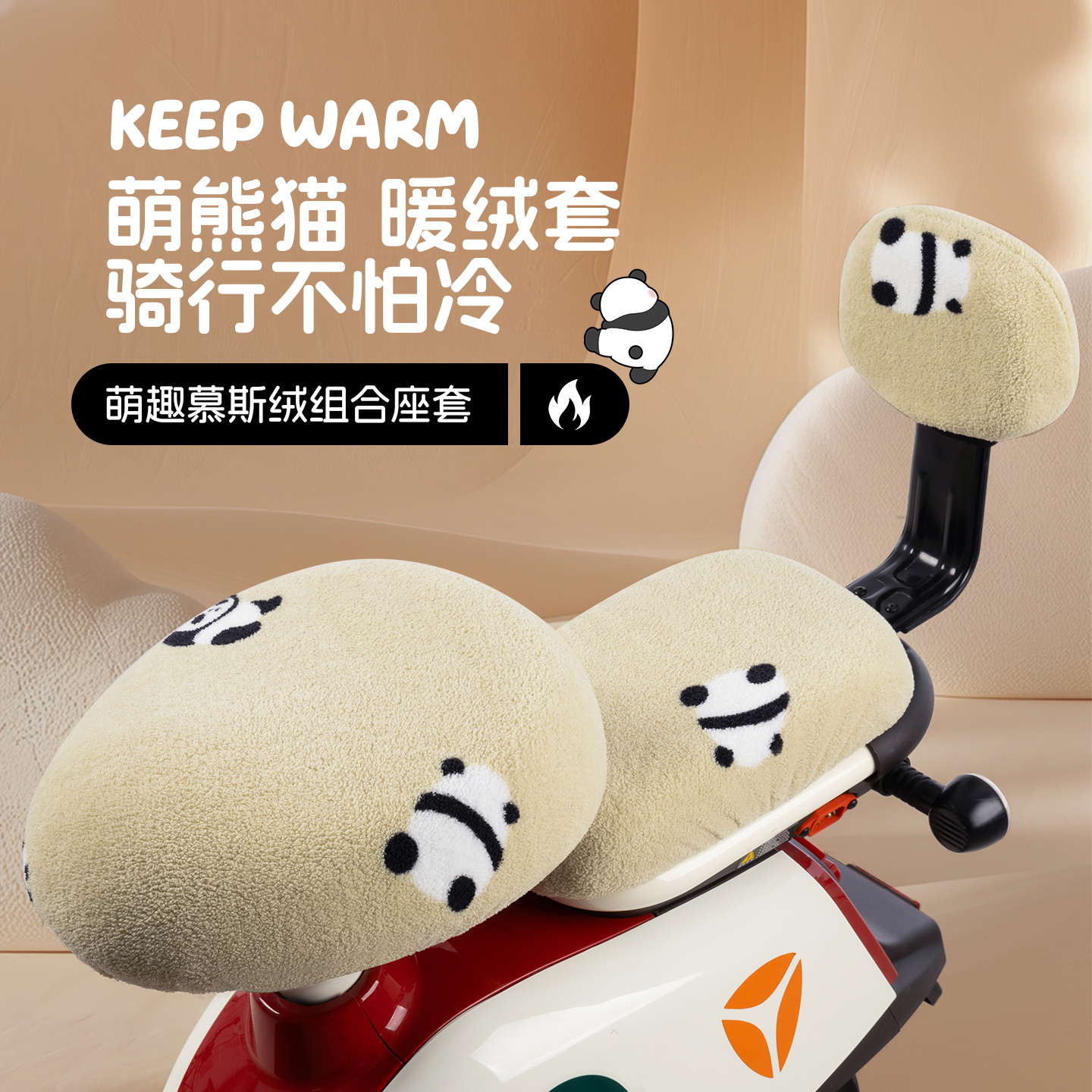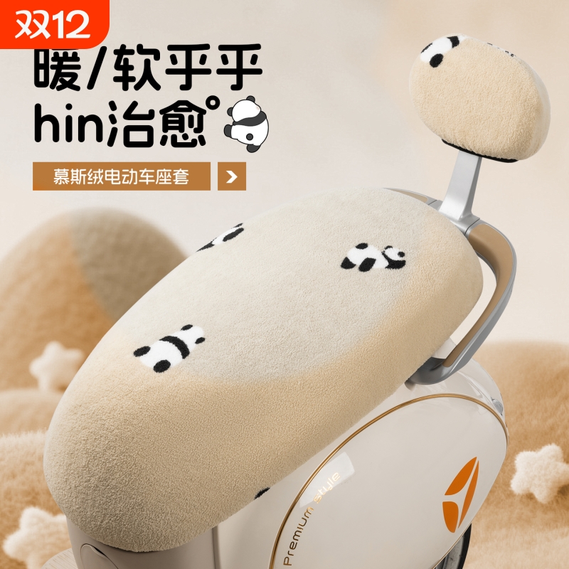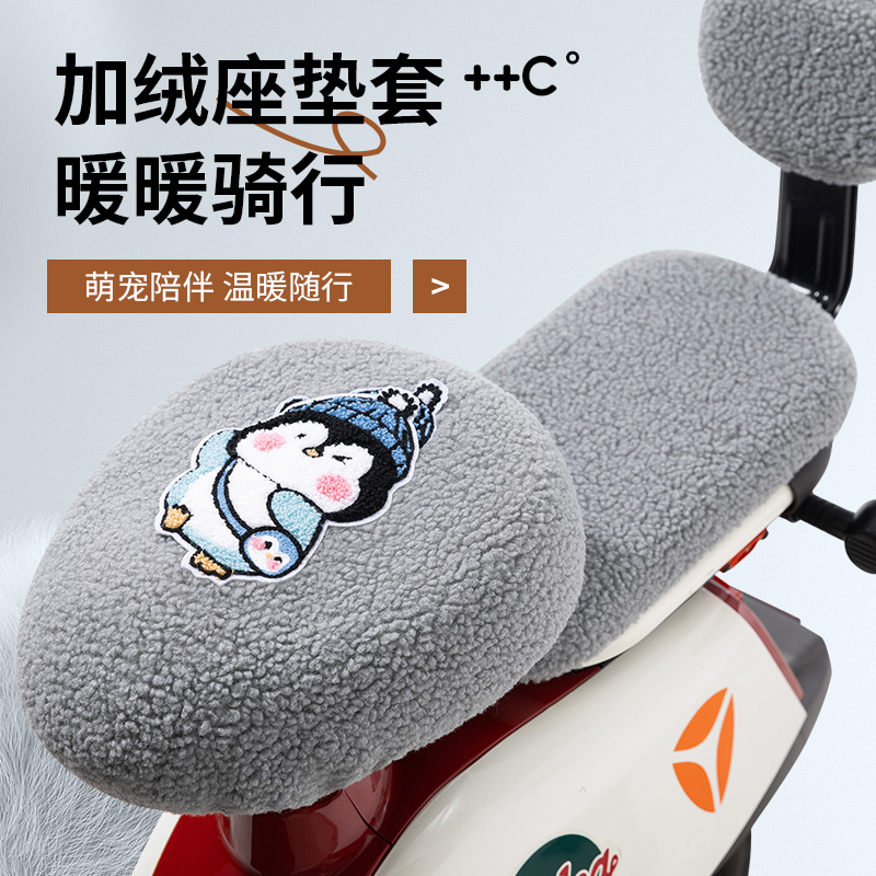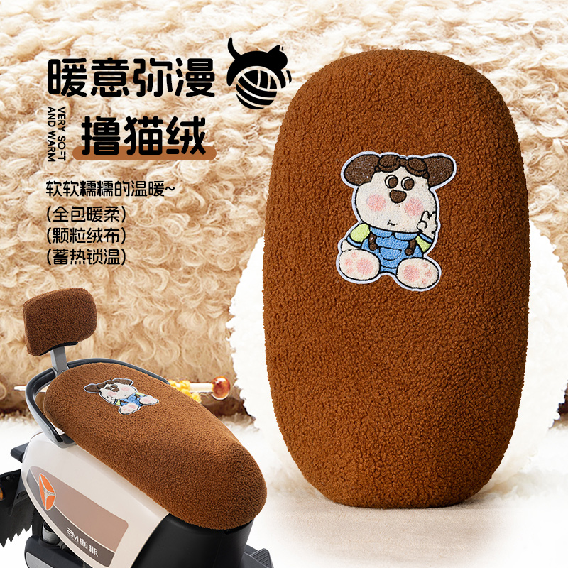 雅迪电动车坐垫套秋冬季加厚绒保暖爱玛小电瓶车座套卡通可爱通用