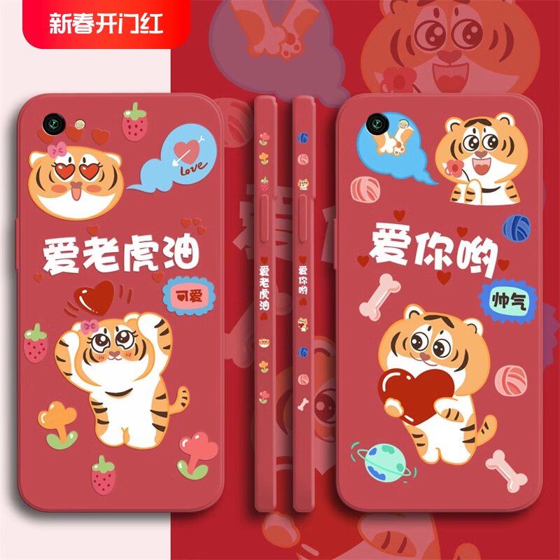 新年款oppor9s手机壳爱老虎油r9splus情侣软壳r9sk爱你呦r9tm液态硅胶r9plus男女红色虎年全包镜头保护套超薄
