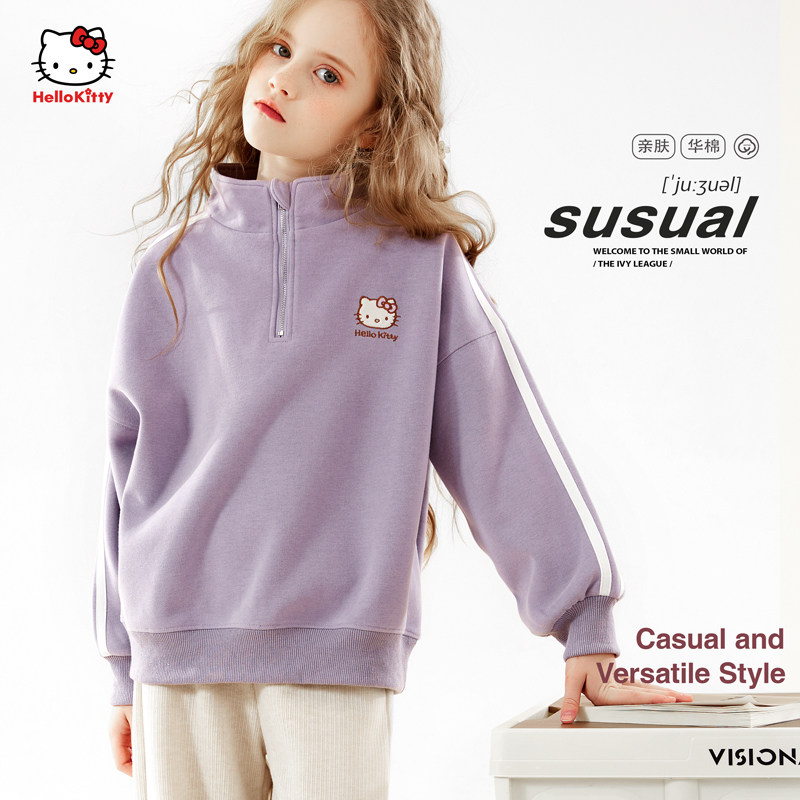 纯棉女童卫衣新款春秋冬季圆领KT猫美式学生风宽松加厚打底衫上衣