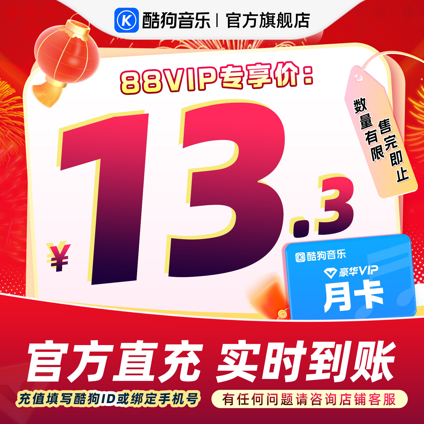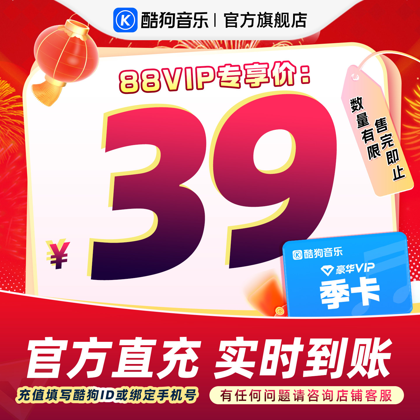 【88VIP专享】官方直充秒到账酷狗音乐豪华VIP会员3个月 到账93天