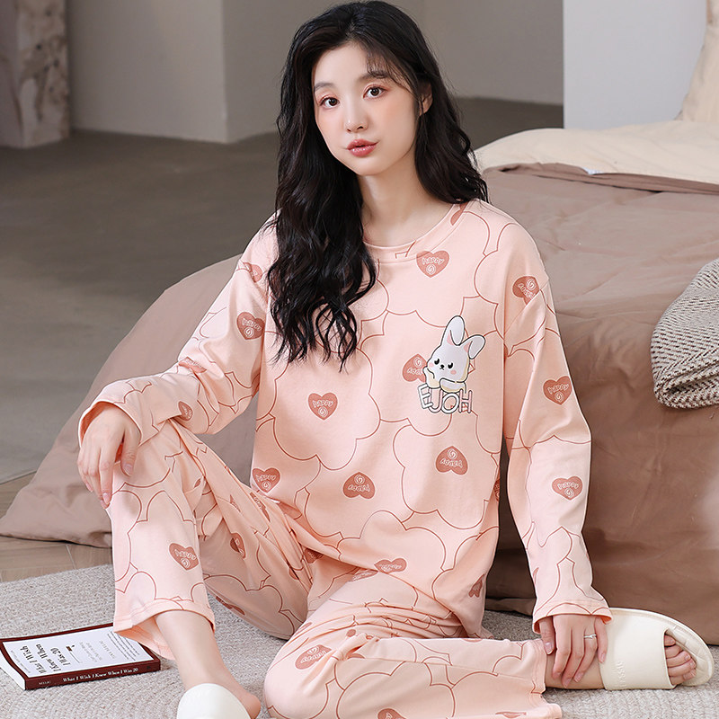 思莉太太睡衣女春秋纯棉长袖初恋粉色甜美可爱韩版宽松秋季家居服
