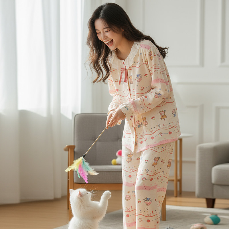 甜美韩版长袖睡衣女士2025年新款春秋夏季天纯棉可外穿可爱家居服