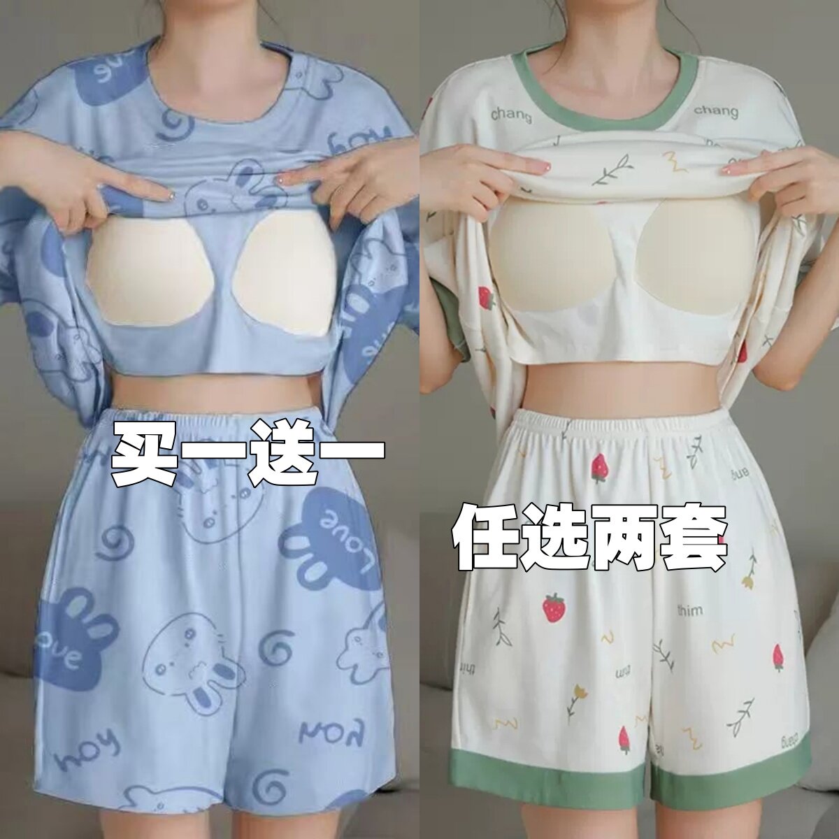 睡衣女夏季短袖宽松两件套装韩版春秋可爱甜美薄款睡衣家居服夏天