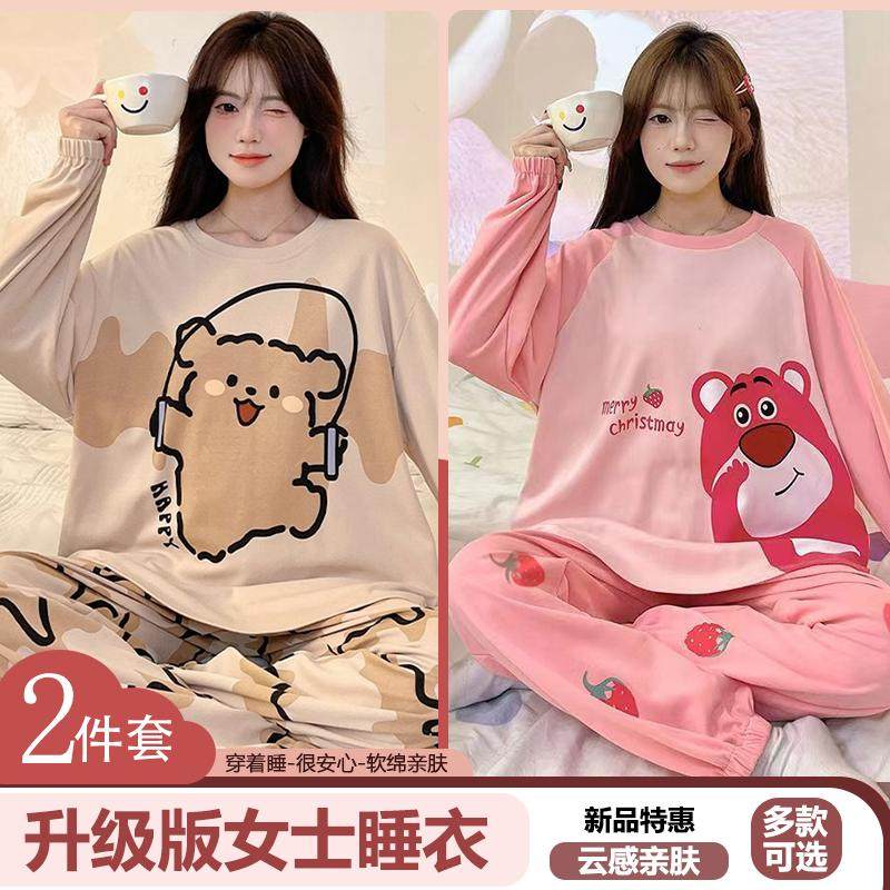 春秋季长袖睡衣套装女士夏冬天家居服学生大码韩版可外穿可爱甜美
