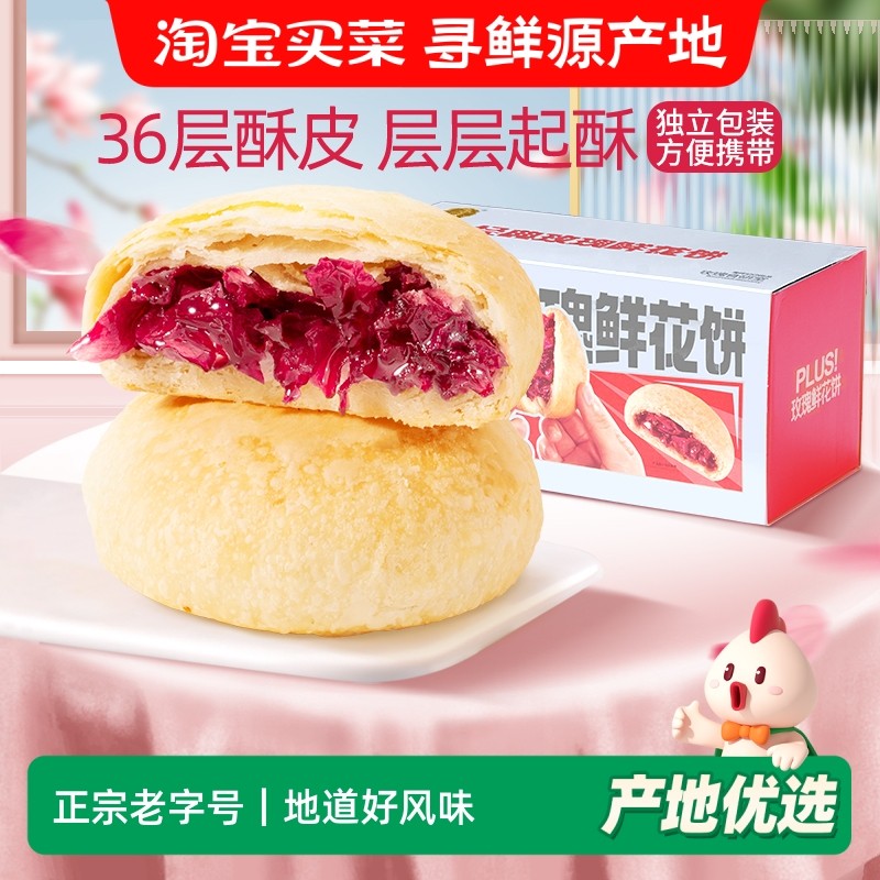 潘祥记鲜花饼现烤玫瑰饼云南特产伴手礼糕点心零食小吃玫瑰花早餐