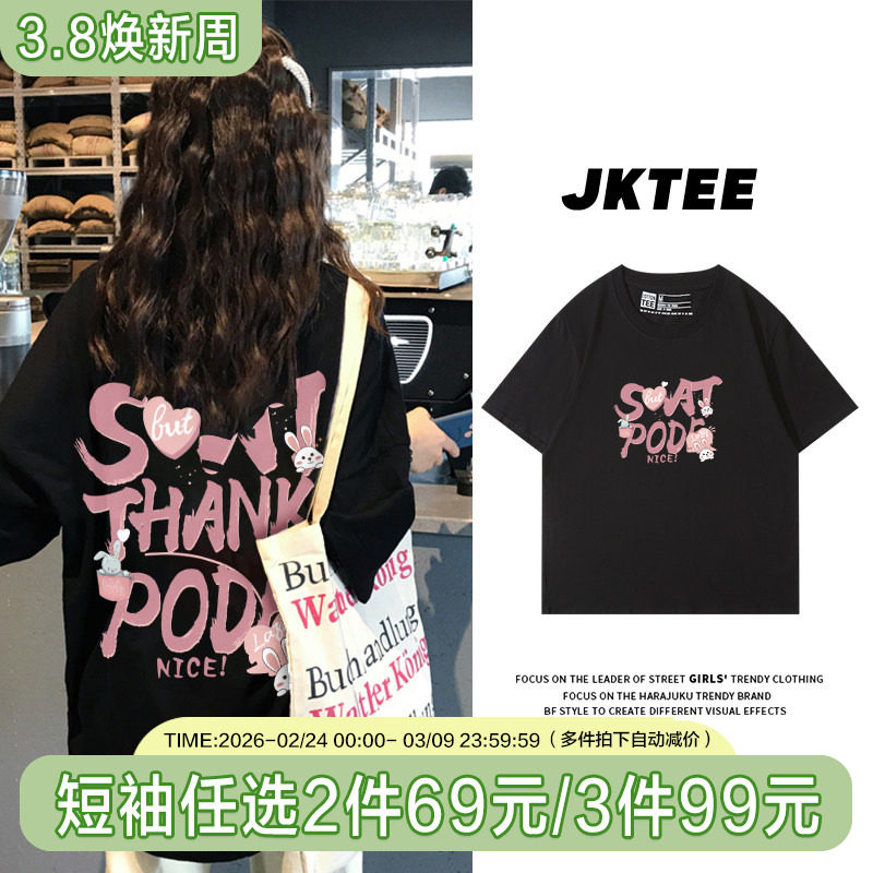 ins短袖t恤女夏2026新款小衫潮韩版学生宽松休闲半袖港风个性上衣