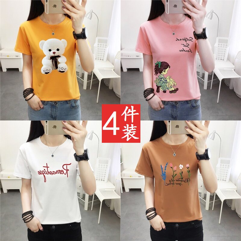 新款女士纯棉t恤短袖宽松半袖百搭体恤韩版上衣圆领常规款学生潮