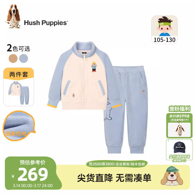 暇步士童装儿童加绒套装小童卫衣卫裤春秋新品儿童加厚宝宝两件套