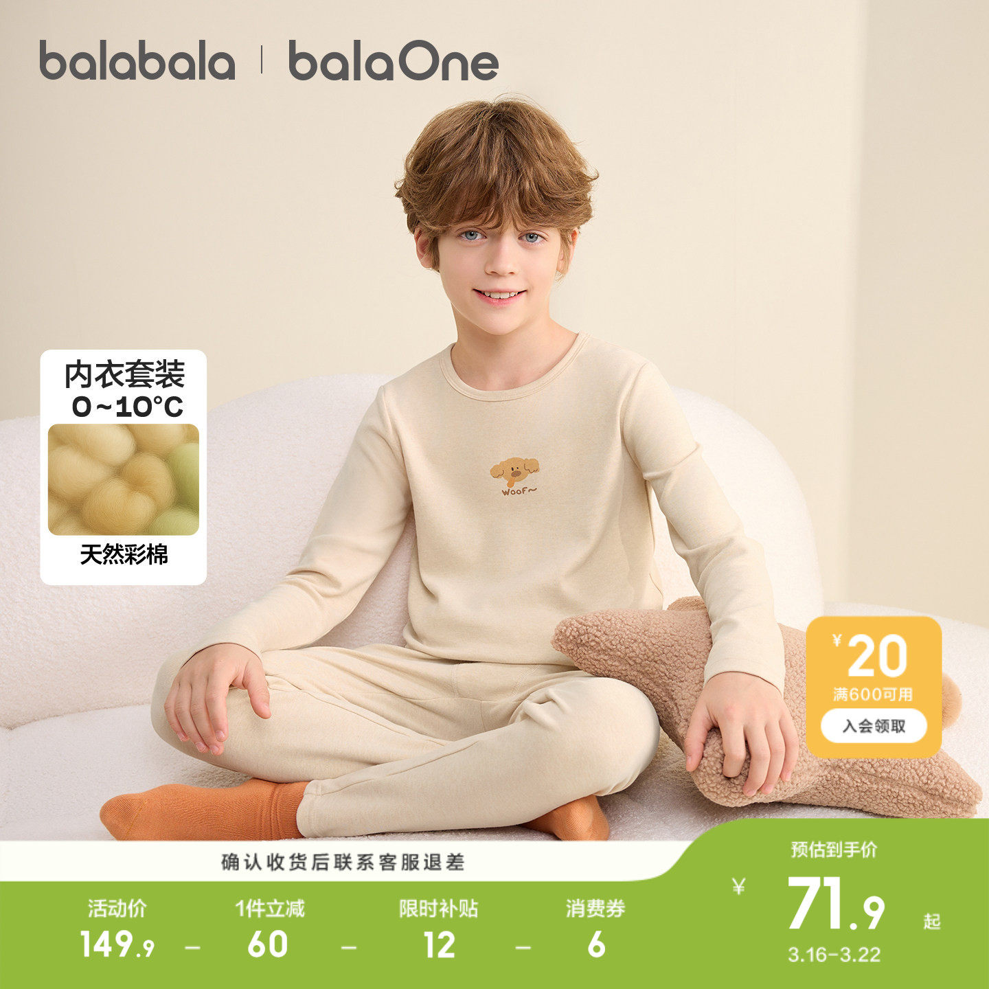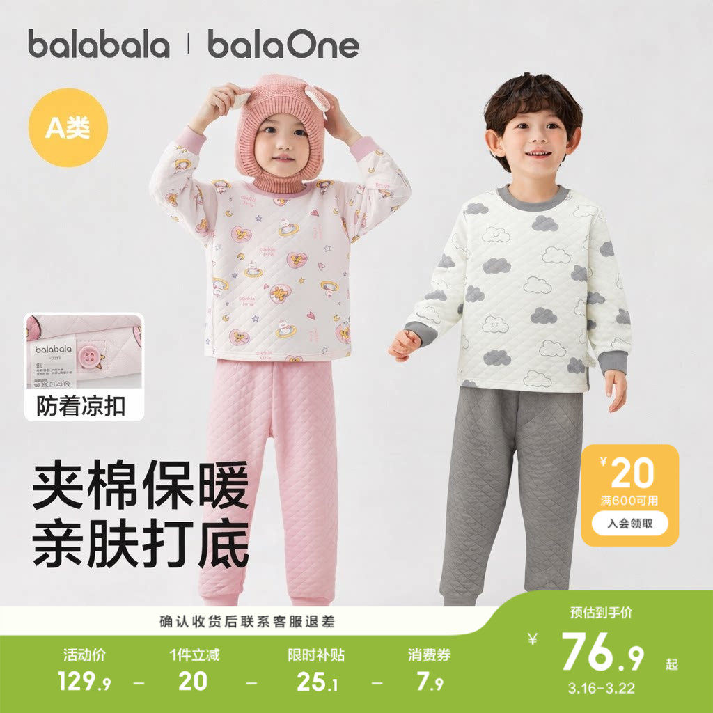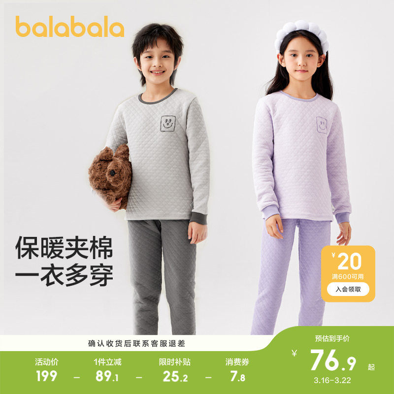 巴拉巴拉儿童内衣套装男童秋衣秋裤冬季加厚两件套女童打底睡衣棉