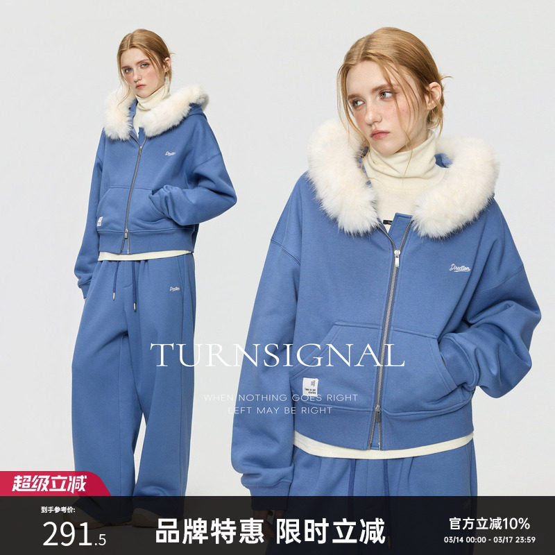 TurnSignal短款外套长裤套装女秋冬加厚连帽休闲宽松运动两件套