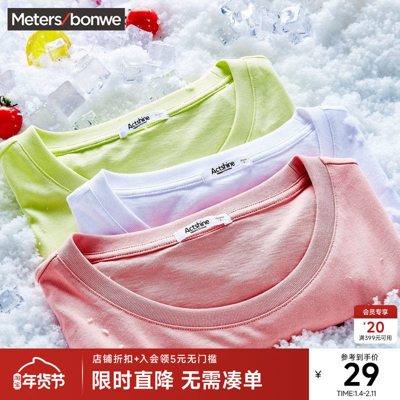 美特斯邦威白色短袖t恤女夏季纯色圆领打底衫基础内搭宽松体恤女