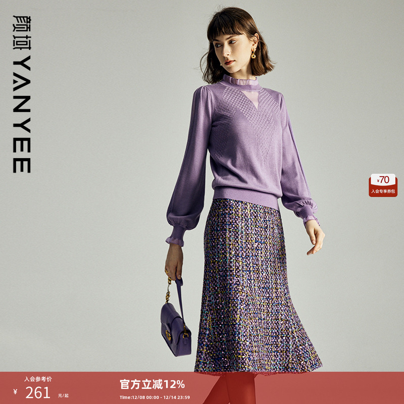 颜域气质小香风时尚套装2025新款春季女装紫色针织半身裙子两件套