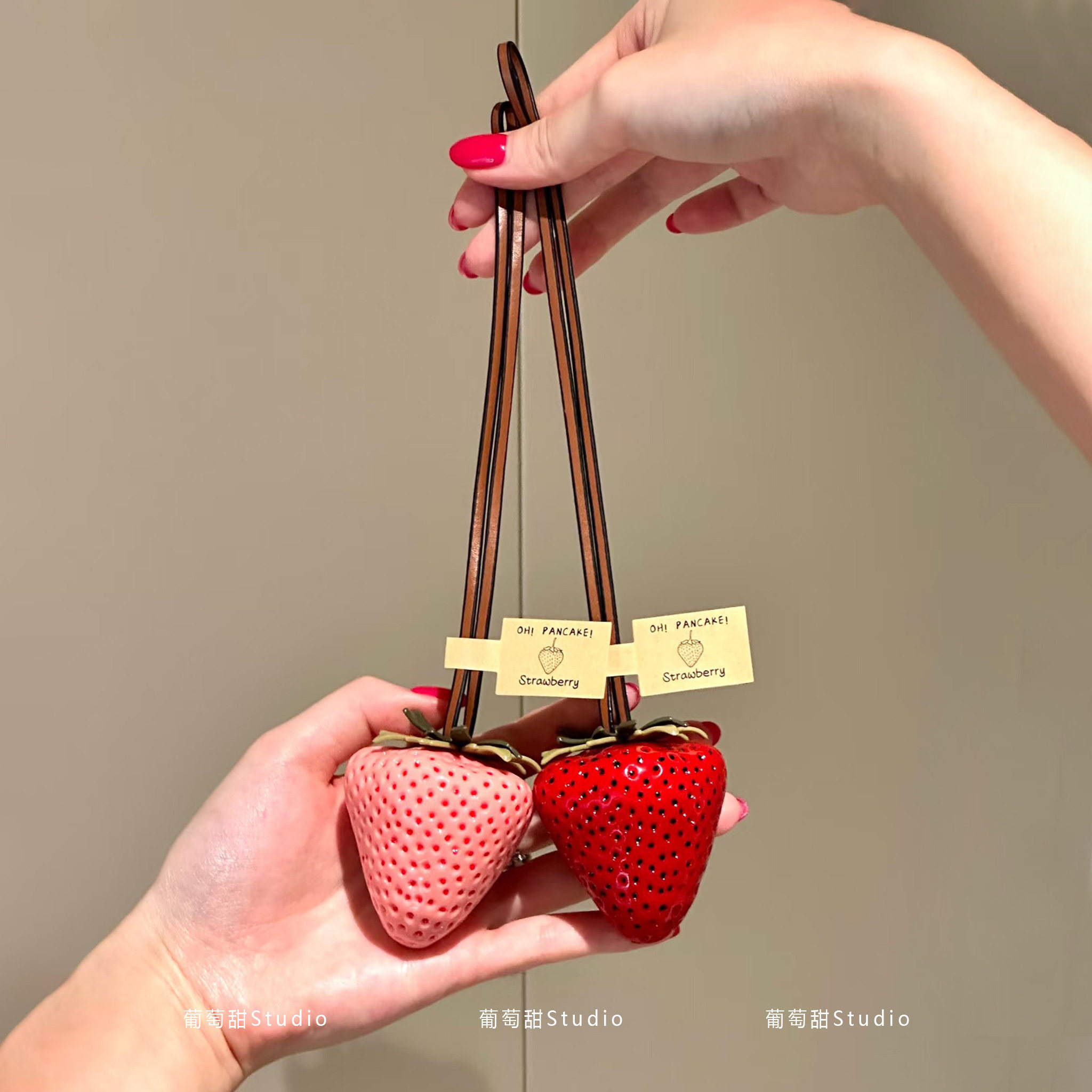 ’一颗大草莓‘包包挂饰树脂立体香甜汽车钥匙扣装饰情侣闺蜜礼物