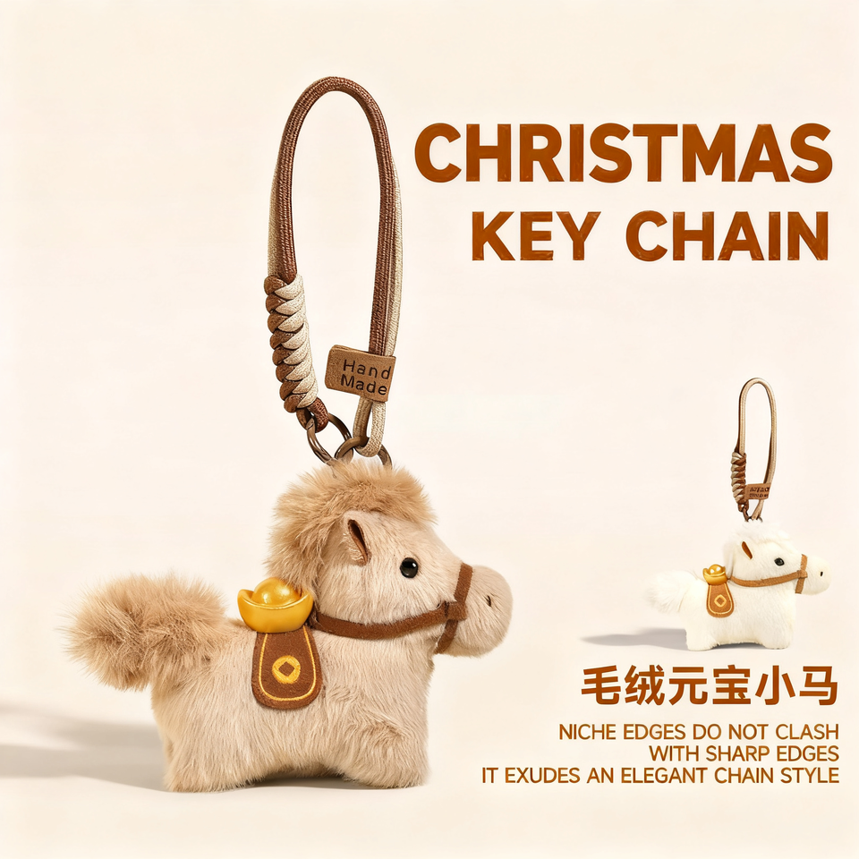 马上有钱毛绒小马包包挂件马年玩偶钥匙扣送女生公仔挂饰新年礼物