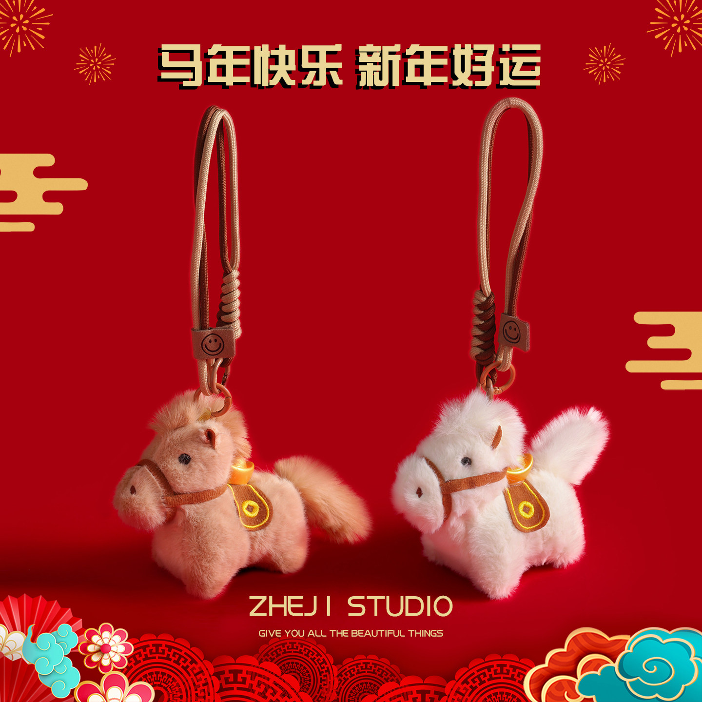 新年马上财神钥匙扣2026马年挂件新款包包挂饰国潮生肖马礼品批发