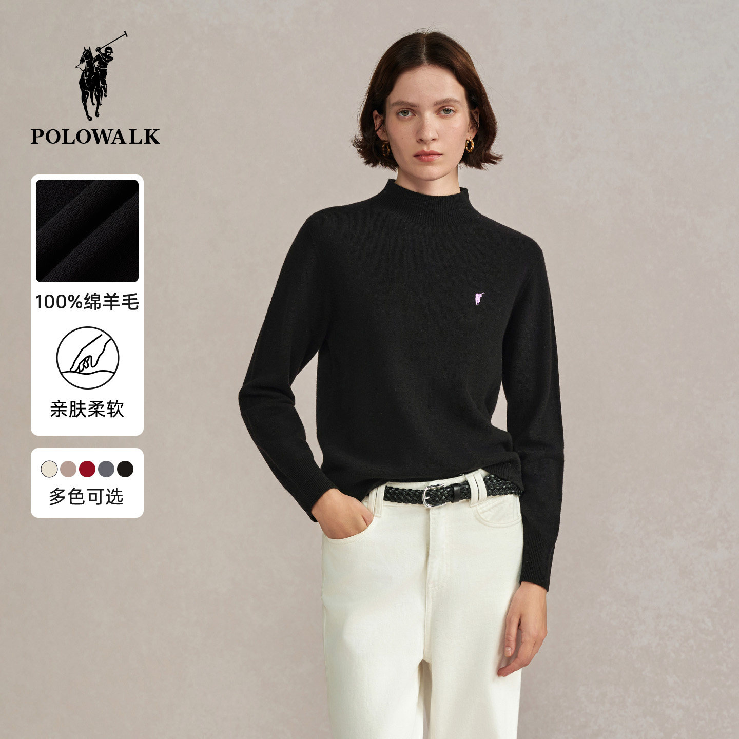 【100%绵羊毛】POLOWALK女式羊毛衫2025冬季新品内搭半高领上衣女