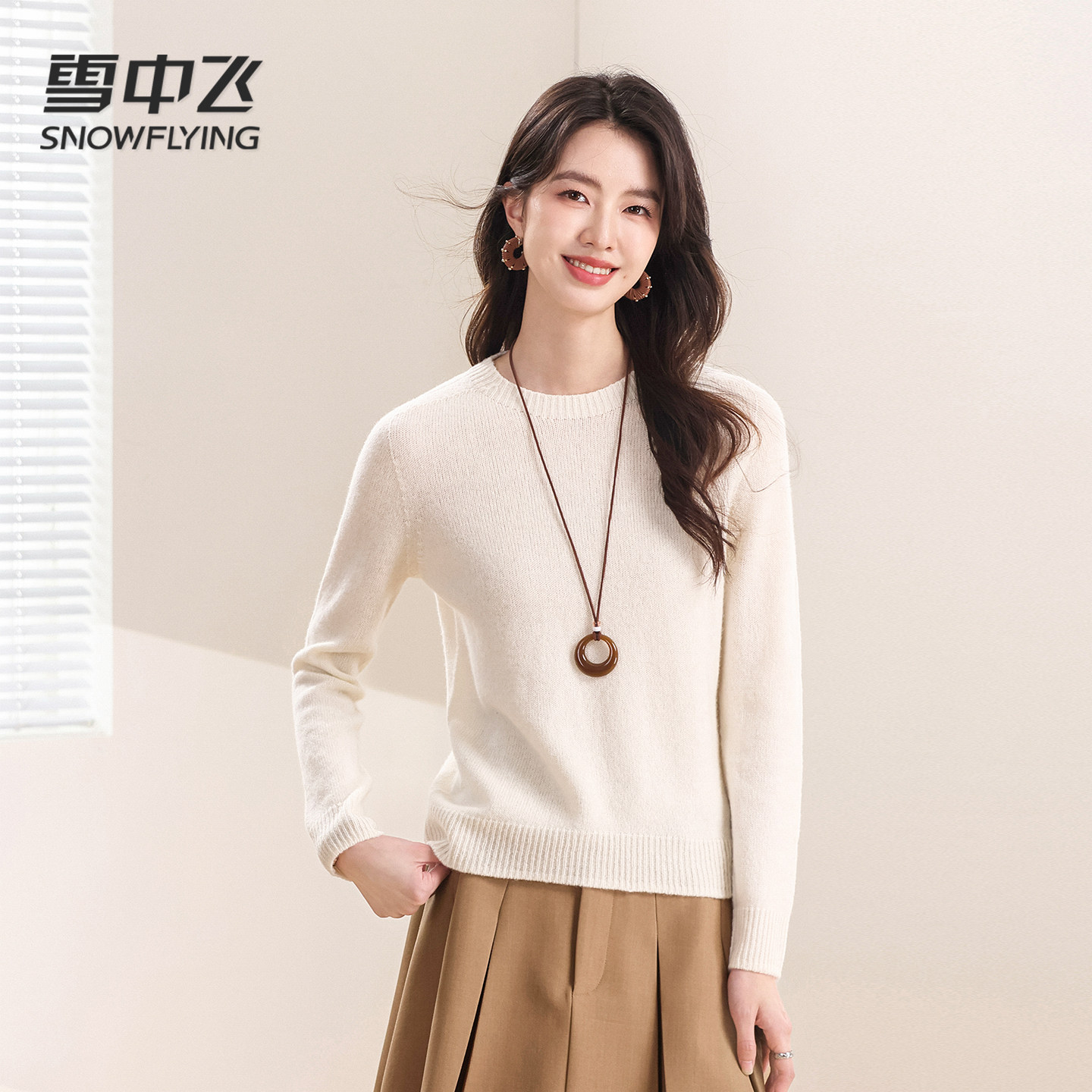 雪中飞【厚实保暖100绵羊毛】纯色女士羊毛衫日常内搭长袖上衣W